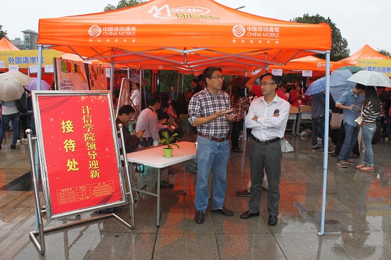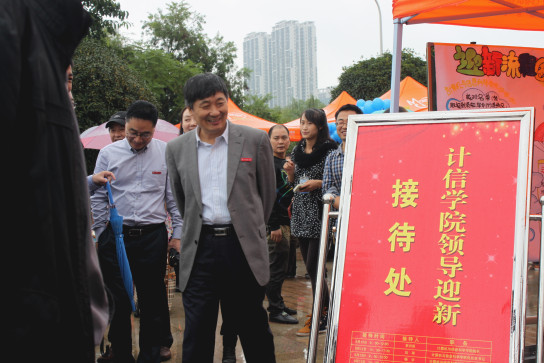 浪live 党总支书记刘军、院长李月臣、副院长李世宏、杨德刚,党总支副书记杨宇、办公室主任罗世祥亲临迎新大本营现场,其中主要党政领导实行“领导迎新接待制”,制作的有“计信学院领导迎新接待处”迎宾牌,坐镇迎新现场解答新生及家长的疑问,受校领导班子的一致好评。