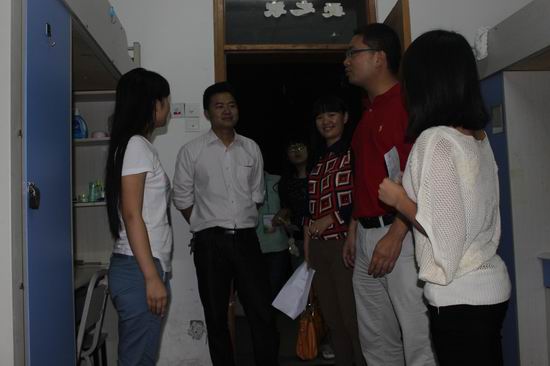 第一天忙碌的迎新工作结束后,浪live 党总支副书记杨宇、团总支副书记张敬与学院辅导员老师、团总支学生会主席团成员不辞辛苦,走访了和风苑、嘉风苑、惠风苑新生寝室。与新生及家长亲切交谈,对其一天的辛苦表示慰问,针对新生的各类问题一一进行解答,并提醒新生军训的注意事项。从他们的激动的言表中可以看出,我们大一辅导员“朱姐姐”挺受欢迎的。
