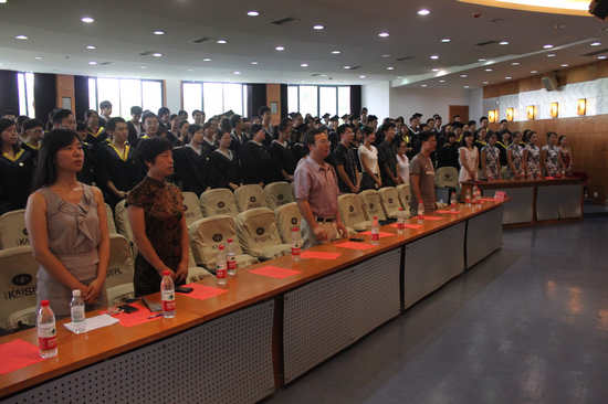 首先,杨宇副书记宣布毕业典礼的正式开始,2013届毕业汇报专题片:《来不及说再见》为典礼拉开了序幕。在座的235名毕业生安静地观看着,四年充满酸甜苦辣的大学生活在脑海中重演,思绪万千。在这怀旧的气氛里,迎来了毕业典礼最为庄重的一刻。魏延副院长宣读授予2013届毕业生学士学位的决定,并由马燕院长为毕业生授予学士学位、颁发学位证书并合影留恋。毕业生们郑重地接过自己的学位证书,历经大学四年洗礼的他们越来越成熟稳重。紧接着,马燕院长和刘军书记为浪live