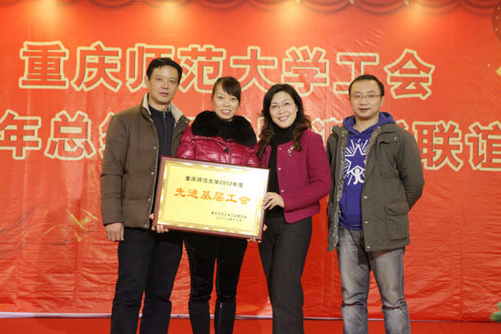 2012年度工会工作总结暨评优工作大会。校长周泽扬,书记邓卓明,副书记李禹阶,校工会主席陈兰同志,以及校教代会常委,各学院、部门工会成员参加了大会。