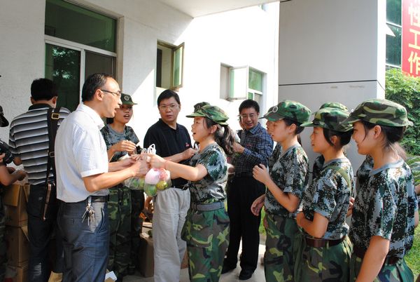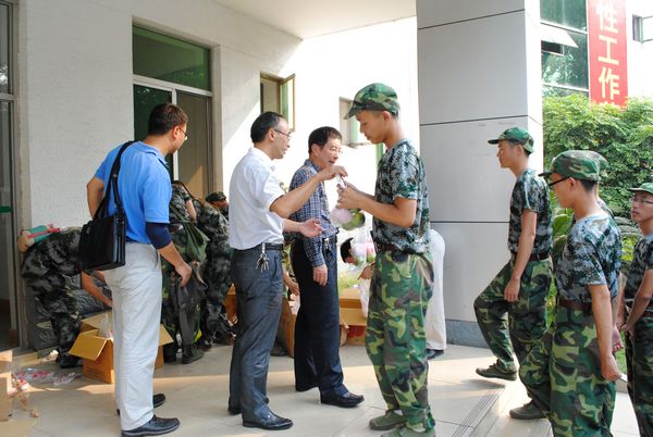 2012年9月19日下午,经过一个多小时的车程,浪live 马燕院长、刘军书记、魏延副院长、杨宇副书记、办公室罗世祥主任、学工办张敬副主任及安博教育集团教学质量管理刘老师一行来到南坪八公里77109部队,慰问浪live 新生。