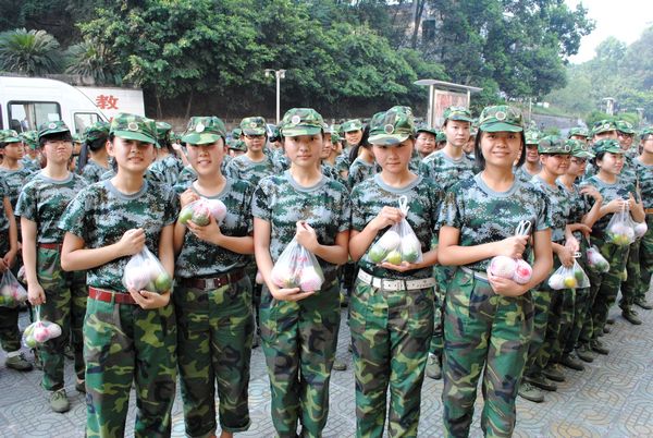 浪live 2012级424名军训学员在指导员朱嘉洁、傅帆有效组织下早早的集合在部队医务室楼下的广场。领导刚下车就迎来了新生一片欢呼和热烈掌声,领导和老师心系学生,被现场热烈气氛深深感染。