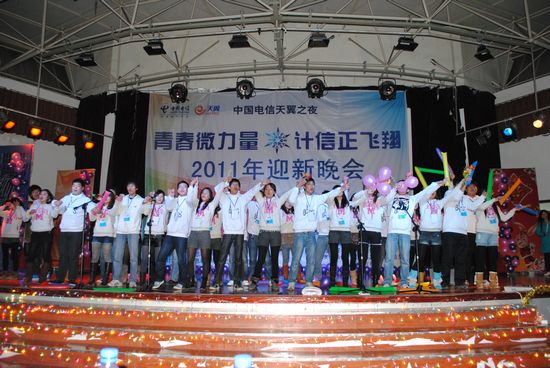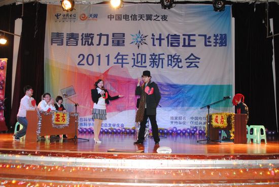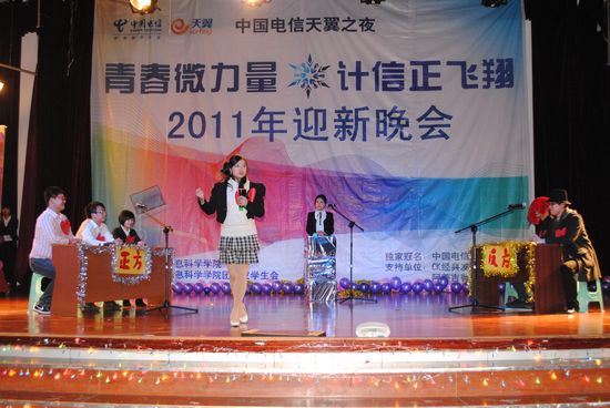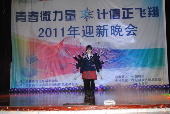 寒潮绕道去,热情洋溢来!伴着飘飞的彩带、亮丽的彩球,2011年12月11日晚上7:00,在同学们的欢呼与荧光棒的闪耀下,以“青春微力量,计信正飞翔”为主题的浪live