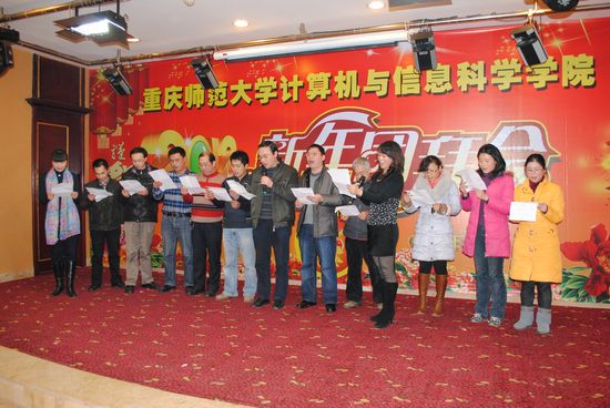 2012年1月8日下午,学院在沙坪坝陶然居隆重举行了2012年新年团拜会。校领导孔春阳副校长以及部分学院领导应邀出席了团拜会,学院全体教职工及离退休教师参加了团拜会。