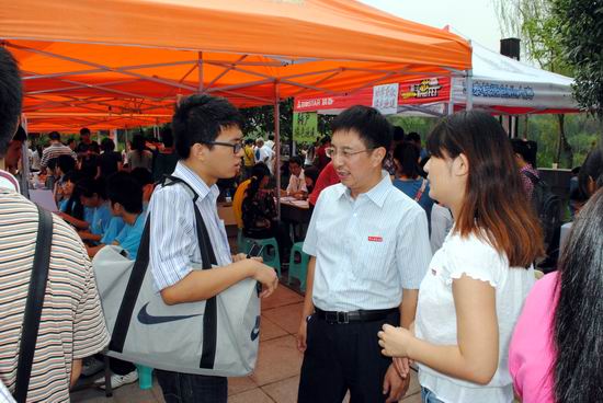 学院领导在现场及时了解新生报到情况,并向新生讲解