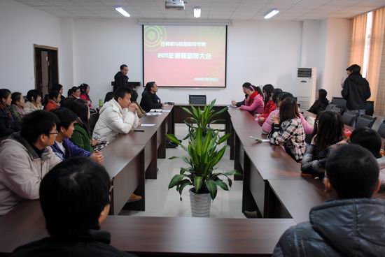 在动员会上,马燕院长跟同学们分享了考研的自身感受,强调了信心的重要性,并就怎样科学复习做出了详细的讲解;魏延副院长介绍了志愿填报和补录的注意事项;杨晓红副院长对考试时间和考试期间的注意事项进行了温馨提醒;李晓燕书记以“信心比黄金重要”来鼓励同学们,希望大家一定不要半途而废;最后,刘军书记用“加强信心,鼓足干劲;科学准备,合理作息;放下包袱,轻装上阵;掌握技巧,把握机遇;一鼓作气,预祝成功”五句精炼的话对同学们提出了殷切希望。07级计算机科学与技术专业的李爽同学代表所有考研学生向学院领导和老师做出承诺,一定严守考风考纪,以优异的成绩回报学院的关心。随后,师生们就考研事宜进行了广泛深入的交流。