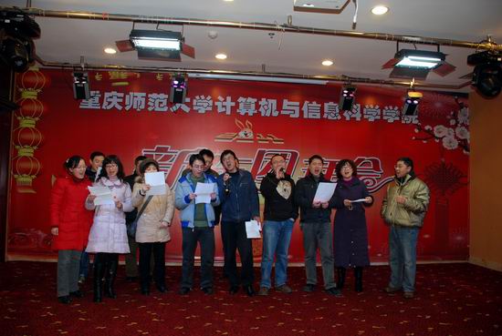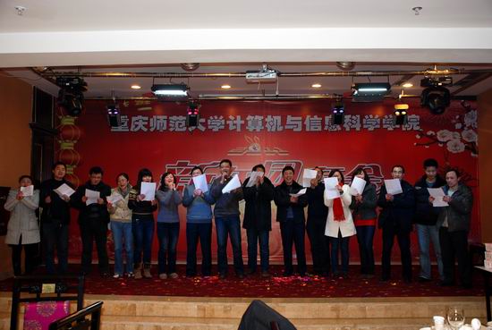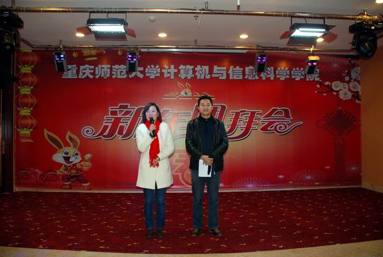 2011年1月6日下午,学院在沙坪坝陶然居隆重召开了2011年新年团拜会。校领导杨新民副校长以及数学学院、物理与电子工程学院、管理学院等相关学院和部分部门领导及来宾应邀出席了团拜会。学院全体教职工、离退休老师参加了团拜会。