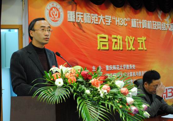 下午2:30,各位领导嘉宾在经久不息的掌声中步入仪式现场,主持人对其进行一一介绍后揭晓了本次活动的主题。随后各领导嘉宾依次发表讲话:洪全处长简明扼要地阐述了本次“H3C杯计算机及网络大赛”的相关情况;刘军书记指出浪live