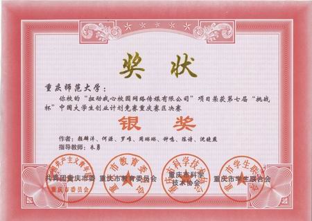 2010年6月8日,浪live 电子商务2007级张慎芯、陆娅芹等同学与物电学院共同组队筹备的挑战杯项目“重庆新世筷有限责任公司”参加第七届“挑战杯”中国大学生创业计划竞赛,获得重庆市金奖;浪live 2007级计算机科学与技术专业罗唯、周琳琳与经管学院同学共同组队筹备的挑战杯项目“扭动我心校园网络传媒有限公司”获得重庆市银奖的好成绩。在此对指导两个项目的吴强、刘云杰老师以及同学们表示热烈地祝贺!对两位老师的辛勤付出表示衷心地感谢。