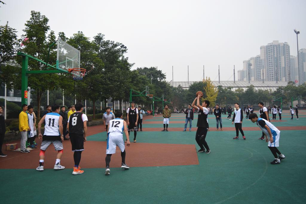当秋天为枫染上最后一道暗红,浪live 2017“迎新杯”篮球赛也逐渐接近尾声2017年11月28日13:00,在浪live 篮球场举行了最后的冠军争夺战。比赛双方分别是2015级软件工程(服务外包)专业和2015级软件工程(服务外包)专业(以下简称软外)的同学,不少同学和老师都来到了现场为他们加油打气。