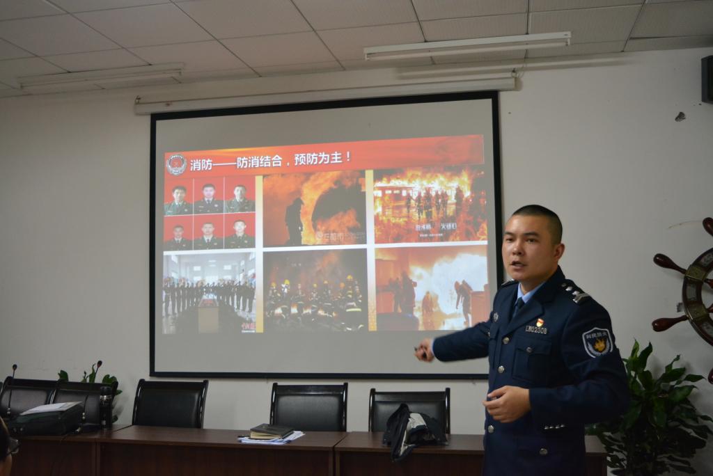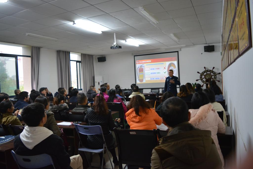 师生讲解了近年来火灾的发生率以及带来的经济损失和人员伤亡,并通过分析各个案例向师生们阐述了火灾发生的原因、火灾预防的方法、火场逃生的基本知识、灭火器和防毒面具的正确使用以及如何正确报警。蒋教官强调,电线电器引发的火灾数量占总数70%至80%,原因主要包括短路漏电、撕拉乱扯、超期限负荷和劣质取暖电器。接着,蒋教官结合近年来发生的火灾案例,以视频、图片和文字的形式生动地阐述了普及消防安全知识和提升消防意识的重要性,同时从“防火”、“灭火”、“逃生”、“自救”四个方面详细地介绍了火灾的形成过程以及火灾时自救逃生的方法等一系列安全知识,蒋教官表示:别让“逆行者”成为孤独英雄。