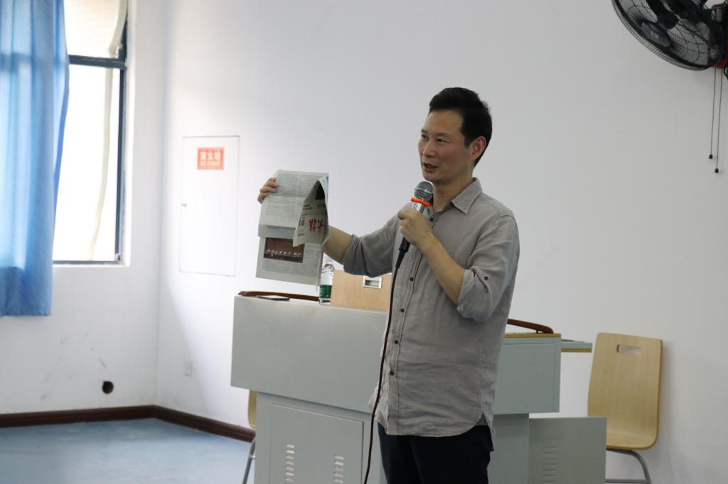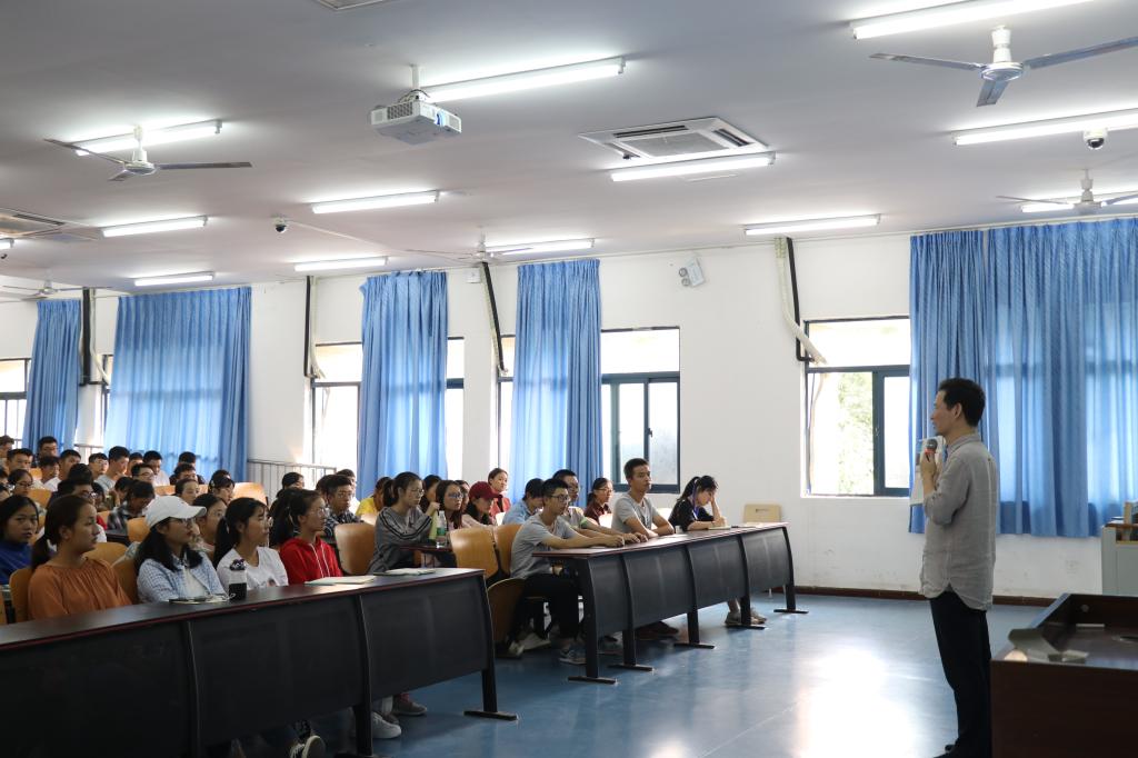 报》中一篇我校文学院学生所作文章“大国气度与秩序(华为视角)”作为开场,向同学们抛出了一个问题:在大学四年中,你愿意学好专业知识还是愿意提升自己成为更有开创性、更强大的人?以此问题引导学生思考,并引出了“要做一个有梦想、永不停息的活生生的人”的重要思想。随后,王教授强调:不忘初心、牢记使命是大家来到大学的一个重要任务;他提到浪live