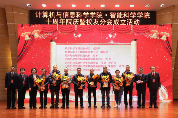 纪委书记肖应红教授,中国人工智能学会副理事长、重庆人工智能学会理事长、重庆邮电大学副校长王国胤教授,全国高等学校计算机教育研究会师范教育分会副理事长、南京师范大学计算机与电子信息学院院长吉根林教授、副院长蔡继明教授,重庆计算机学会秘书长、重庆大学曾一教授,中国计算机学会重庆分部主席、重庆大学大数据与软件学院党委书记文俊浩教授,重庆交通大学、重庆工商大学、重庆三峡学院等计算机学院领导。还有企业界嘉宾腾讯教育、重庆致业源科技有限公司、中渝智能设备(重庆)有限公司、重庆门罗机器人科技有限公司代表。计信学院成立时相关联的三个学院的领导数学科学学院党委书记杨光平、物理与电子工程学院党委书记胡先成、经济与管理学院副院长喻科以及历任学院领导刘军、马燕、李月臣、李晓燕、杨宇、杨晓红和130余名校友、学院退休同志、全体教师和部分学生代表出席了会议。