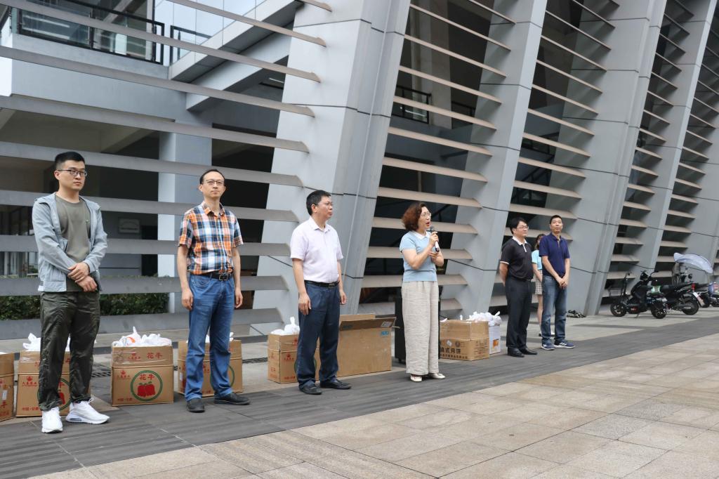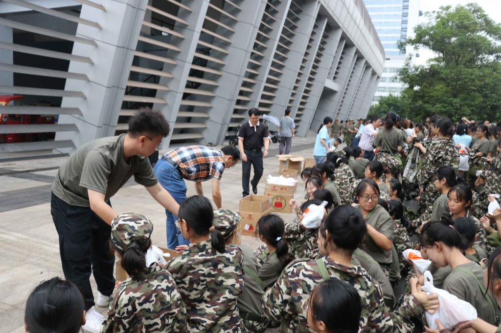 领导及团学会成员为新生分发军训慰问品,送上的不仅是一份军训慰问礼物,更是一份来自计信学院的温暖关怀。