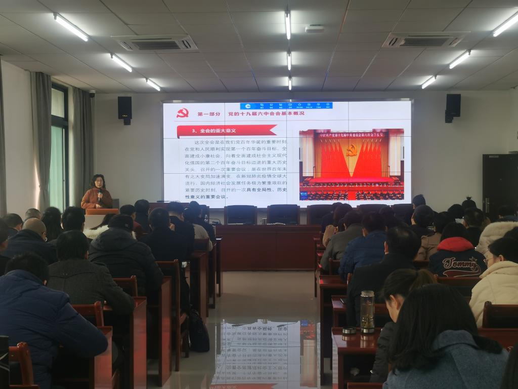 陈兰书记在简要介绍党的十九届六中全会基本概况后,从“为什么要总结百年奋斗重大成就和历史经验”“党的百年奋斗的初心使命和重大成就”“新时代的历史性成就与历史性变革”“百年奋斗的历史意义与经验”“习近平新时代中国特色社会主义思想的政治意义与实践作用”“从历史走向未来”六个方面,对党的十九届六中全会精神进行了全面系统阐释和深刻解读。同时,结合高校属性和教师使命,谈了谈如何为国育人,肩负起高校教师的使命和担当。