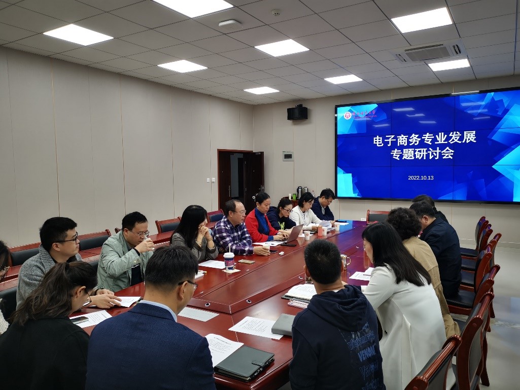 于2022年10月13日,在致用楼302会议室举行了电子商务专业发展专题工作会。出席会议的有学院领导班子、电子商务专业全体专任教师、辅导员、教科办工作人员等。会议由学院副院长冉瑞生主持。