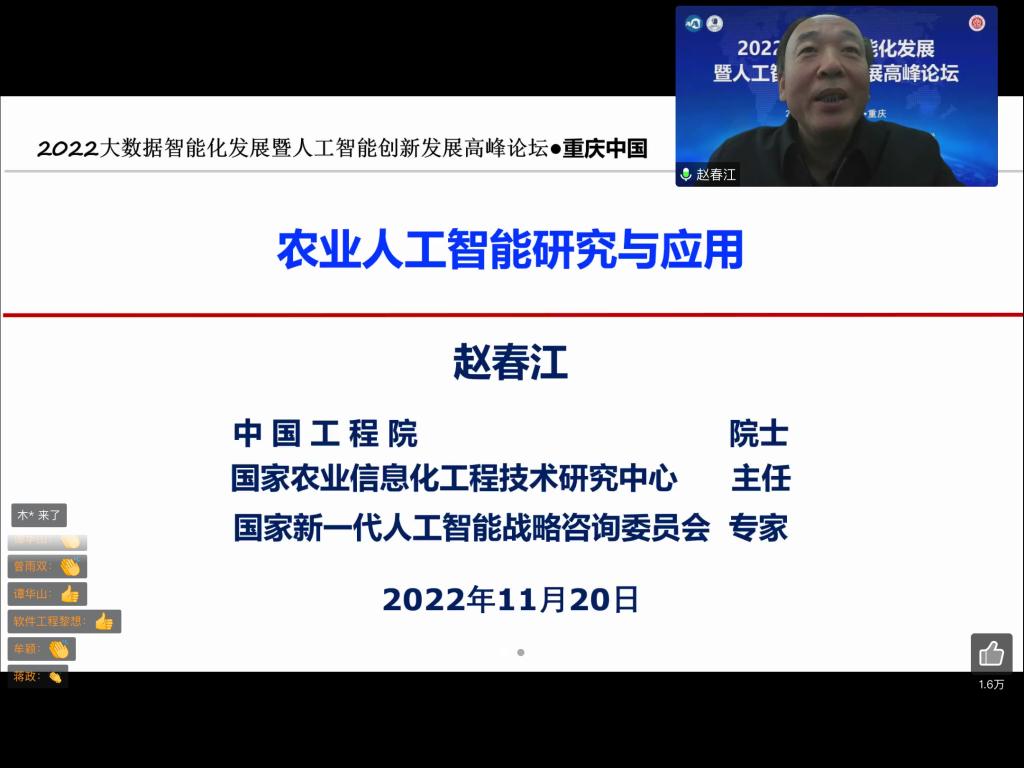 承办的“2022大数据智能化发展暨人工智能创新发展高峰论坛”在线上成功举办。本届论坛旨在通过多学科交叉融合,多种应用场景的展示,促进人工智能技术的普及和推广,打造人工智能领域产、学、研紧密结合的高端前沿交流平台。中国工程院院士沈昌祥、中国科学院院士管晓宏、中国工程院院士赵春江等专家学者围绕智能科技前沿和智能产业创新发展的焦点问题进行了深入交流。