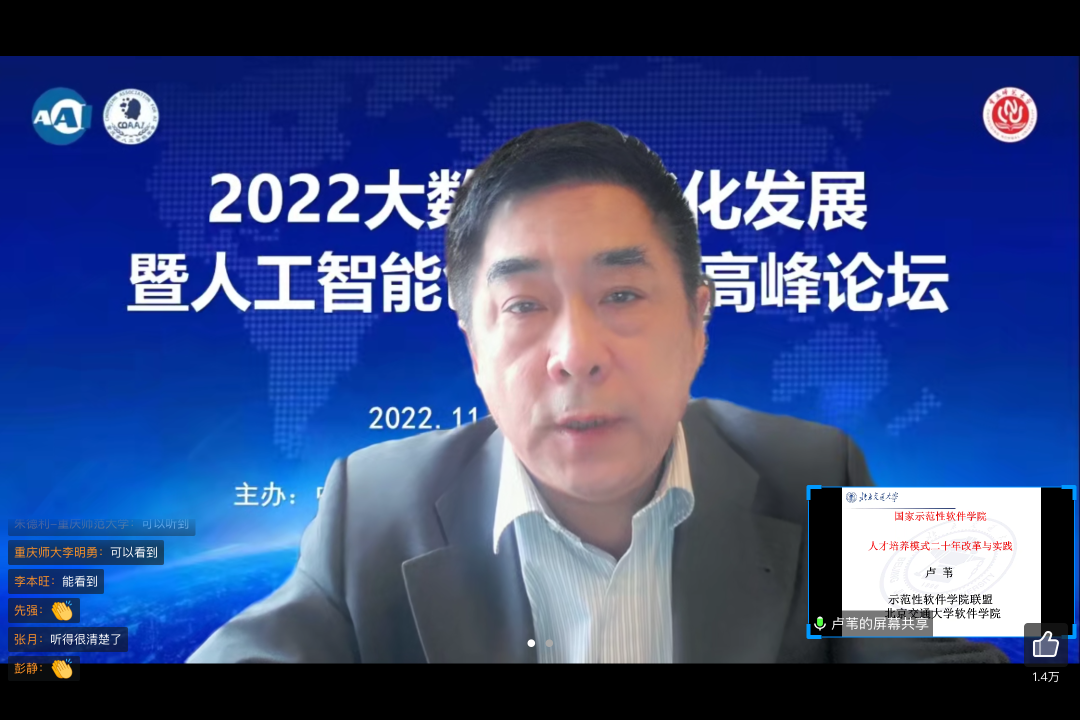 北京交通大学卢苇教授阐述了国家示范性软件人才培养模式改革与实践,指出软件产业发展迫切需要高质量的软件人才,高校应面向高层次人才培养的需要,积极创建新技术、新模式、新业态的课程体系,优化师资队伍结构,搭建多元融合育人平台,拓宽高层次软件人才培养的有效途径。