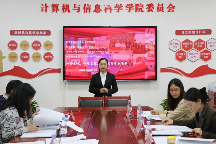 在致用楼314进行2023年本科生国家奖学金答辩。由教科办主任、各系主任以及学工办全体老师共同参与评分。每位同学的演讲都充满了亮点和精彩之处。最终通过评选,电子商务的王稀、软件工程的唐琴凤、计算机科学与技术的郭育研、智能科学与技术的勾艺洁脱颖而出,获评2023年国家奖学金。