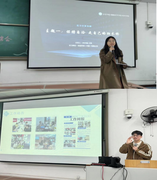 交流会上,2020 级和 2021级8名同学分别围绕专业“实习、就业、留学、创新创业”四个主题进行了深入分享。石佩峰等 4 名同学分享了他们在DB 全球(嘉兴)物流、腾讯科技(成都)有限公司等公司的实习经历,蔡于岳同学分享了他成功找到中国电信沙坪坝分公司的经验和技巧,兰诗诗同学分享了申请留学的经验,魏强等3名同学们分享了他们成功的创新创业项目。交流活动对于帮助低年级同学们更好地把握专业趋势、市场脉搏,为同学们参加各种创新创业比赛或实训项目提供了经验和努力方向。低年级同学纷纷表示要积极投身于专业理论学习,不断提升实战实践能力,为成长成才、高质量就业打下坚实基础。