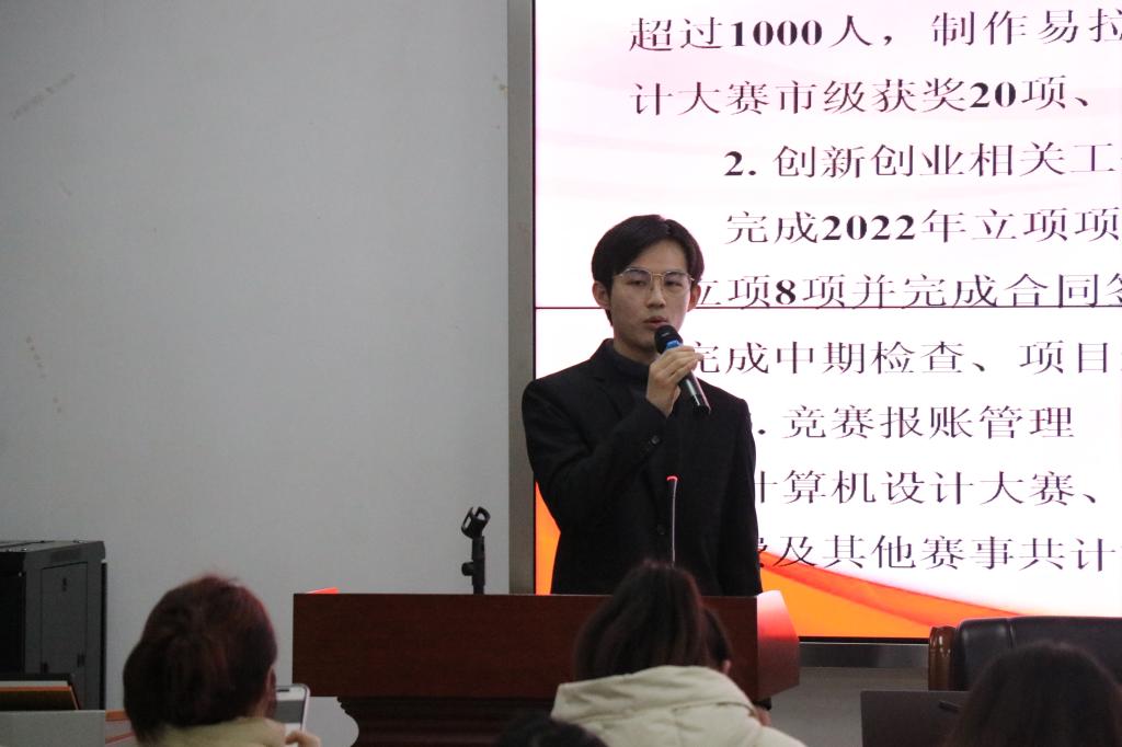 会上,各部门代表对2023年的工作进行总结,展示各部门在2023年所取得的荣誉,对工作过程中存在的问题进行了反思 并提出了行之可效的改进措施,进行了下学年工作展望和计划。团委书记、学工办主任钟华也总结了2023年院团委和学生会的工作,进一步坚定大家的理念,提供方式方法的改革建议。鼓励大家将团委和学生会的工作与学院和学科的发展相结合,与专业和特色相结合,与个人的成长相结合,有信心在青年骨干的共同努力下取得更多收获。
