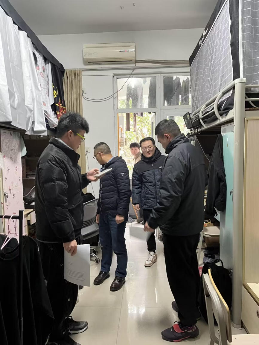 老师们心系学生学习生活的方方面面,李若岩与辅导员们深入园区进行安全检查,一一排查寝室有无安全隐患,提醒学生注意用电用气安全,重点进行了消防安全警示教育。同时详细了解留校学生的学习生活情况,帮助同学们解决困难,提醒同学们合理安排假期,并保持与家人的沟通,度过愉快的春节。