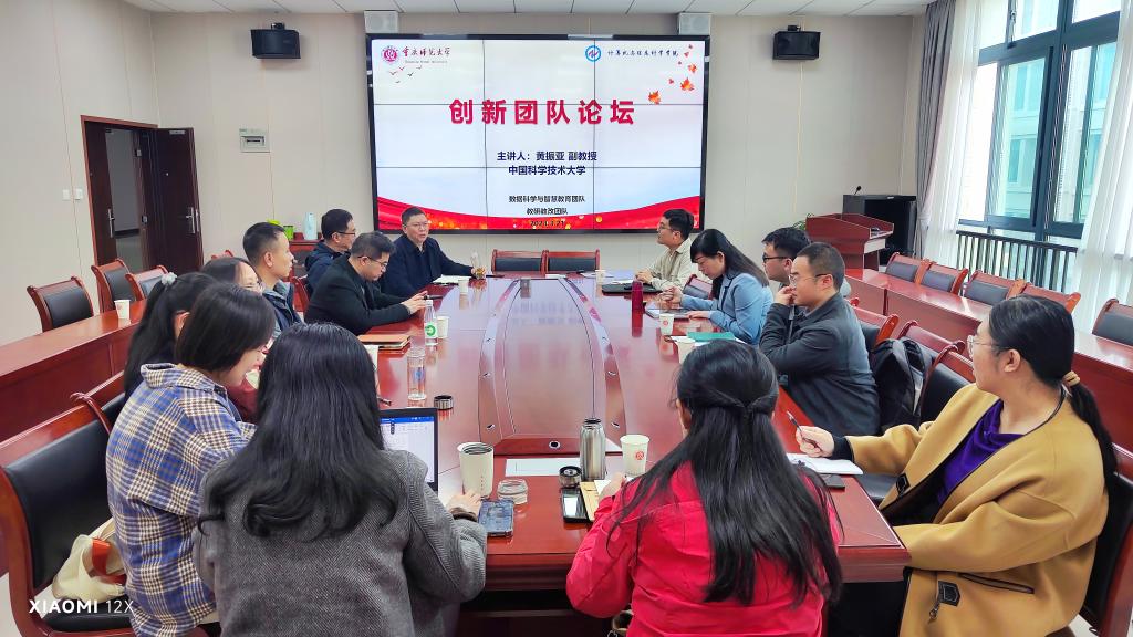 在致用楼302会议厅举办“创新科研团队论坛”,本次活动邀请到中国科学技术大学黄振亚副教授,学院院长魏延、院长助理罗凌等相关老师参加,软件工程系主任冯骥主持。