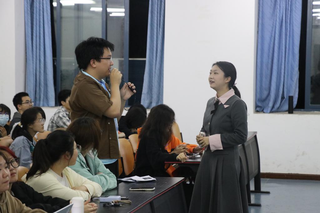 马克思主义学院理论宣讲团陈文静以一组案例引出本次宣讲主题,通过层层论述、细致讲解。从网络安全现状、网络安全对策分析两方面出发,通过对具体事例分析、相关案件分享,生动形象地向在场同学讲述了总体国家安全观的重要性,呼吁在场同学要树立正确的网络安全观,提高网络安全意识。现场学生热烈互动,了解了总体国家安全观的内涵和意义。