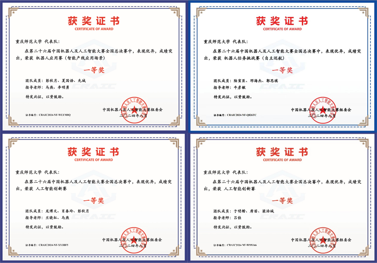 本次大赛分为省级赛和全国决赛两个阶段。省级赛由重庆市教委和重庆市人工智能学会共同主办,来自重庆大学、西南大学、重庆邮电大学等26所高校1000余支队伍参赛。我校派出由研究生和本科生组成的82支队伍,其中61支队伍获得省级奖项,并有44支队伍成功晋级全国决赛。