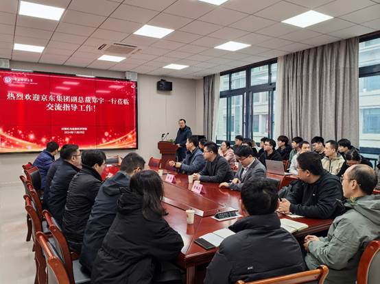 魏延院长首先对郑宇副总裁表示热烈欢迎,并介绍了学校校情,以及学院学科专业、师资队伍、人才培养和科研工作等情况,并期待未来能与京东集团在学术研究、学科建设、人才培养等方面开展合作,实现双方协同发展,期望推动相关领域的研究和实践实现新的突破,继而为高质量发展贡献高校及企业的力量。