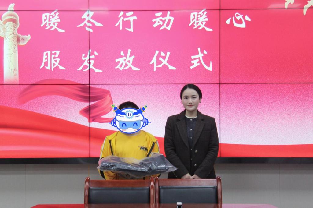 活动伊始,学院团委书记钟华老师慰问同学们,提出教育的本质不仅在于知识的传授,更是温暖的关怀,学院不仅要开展对同学们能力的培养更要关心同学们成人成才路上的需求,解决急难愁苦,同时,培养同学们的社会责任感。“暖冬行动”不仅是一项承诺,更是践行人文关怀、传递友善和责任的注脚。希望通过这一活动为同学们提供物质帮扶,给予大家继续前行的力量。暖心服发放仪式中,三位老师将厚实温暖的衣物送到每一位同学手中,并与同学们合影留念。