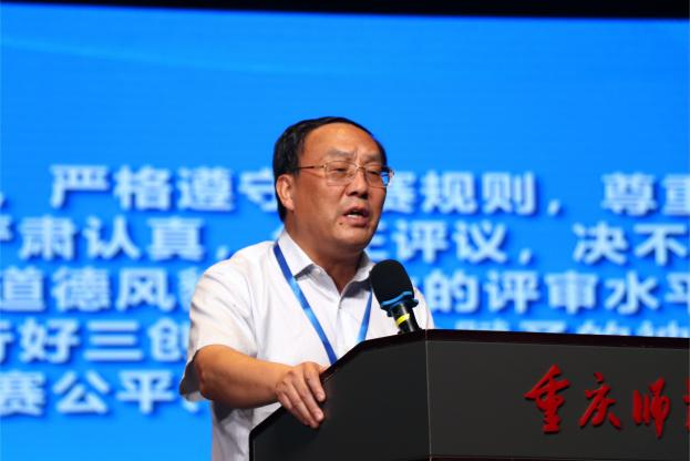 然后,“三创赛”组织委员会主席、西安交通大学李琪教授致辞,他深入解读了“三创赛”的发展脉络和深远意义,他代表第15届三创赛竞赛组织委员会,对重庆市选拔赛的顺利举办表示热烈祝贺,并向所有支持赛事的单位和个人致以诚挚谢意。他回顾道,三创赛自创办以来,规模不断壮大,从最初的1500多支参赛团队发展至今的23万多支,实现了跨越式增长;参赛项目持续拓宽,深度融合5G、AI、区块链等前沿技术;规则也在实践中日益完善,通过政产学研用的紧密协同,创造出教学提升、实践促进、创意激发等六大核心价值。他着重强调,本届新增的新零售实战赛亮点十足,其总决赛将花落重庆,这也是直辖市首次承办该赛事总决赛。李琪主席热情鼓励参赛选手们在赛场上充分展现实力,赛出优异水平,预祝赛事圆满收官。