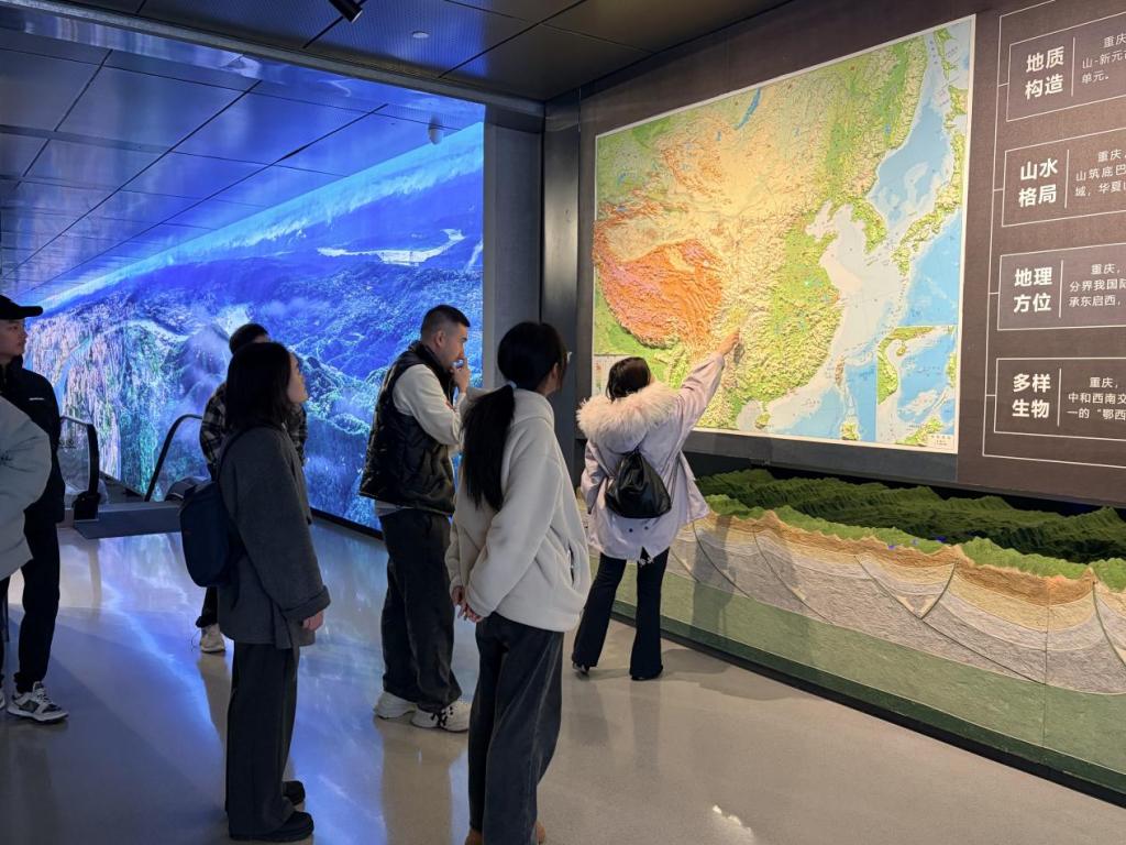 在专业讲解员的带领下,同学们依次参观了馆内“地理位置格局”“历史文化脉络”“历史杰出人物”“城市发展历程”“空间规划布局”“未来建设蓝图”等主题展区。通过图文展板、全景音视频、沉浸式互动体验和大型城市沙盘等多种形式,大家系统了解了重庆从巴渝古都到现代化国际都市的沧桑巨变,直观感受到新时代城市建设的辉煌成就,深切体会到党的科学规划在推动高质量发展中的强大引领力。