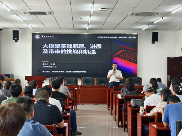 培训从大模型的基本原理出发,系统阐释其核心技术架构、发展历程及与传统模型的本质区别,并结合自然语言处理、智能对话系统等领域的应用案例,分析大模型如何赋能产业创新。王超博士进一步展望了技术趋势,包括模型规模扩展、多模态融合等方向,并重点探讨大模型为高校教师带来的机遇与挑战,如研究范式革新、教学工具创新及伦理风险应对。他提出,教师需主动拥抱技术变革,探索跨学科融合路径,以培养适应智能时代的各类人才。