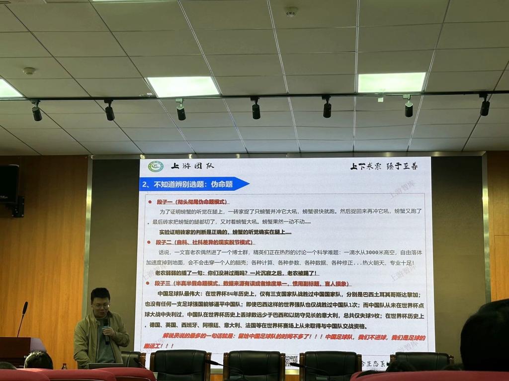 交流环节,陈震与师生积极互动,对老师们提出的如何将自然科学研究与社科研究进行有机结合等问题进行了详细解答。