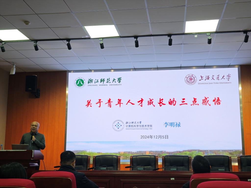 在致用楼102学术会议厅举办第十期“图灵学术讲堂”,浙江师范大学教授李明禄应邀做题为《关于青年人才成长的三点感悟》的学术交流分享。学院领导、全体教师、研究生参加,会议由院长魏延主持。