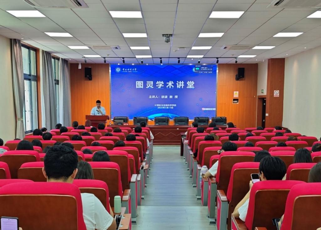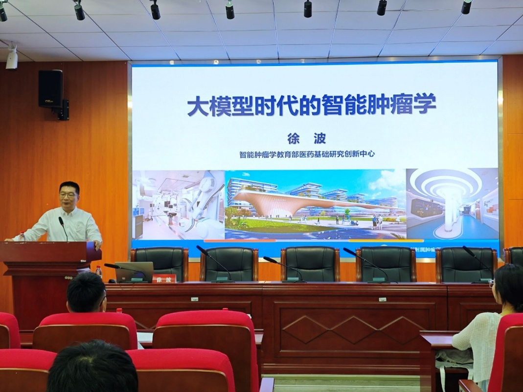 在致用楼102学术会议厅举办第十一期“图灵学术大讲堂”,重庆大学附属肿瘤医院院长教授徐波应邀作题为《大模型时代的智能肿瘤学》的学术报告。学院领导、全体教师、研究生参加,会议由副院长崔少国主持。
