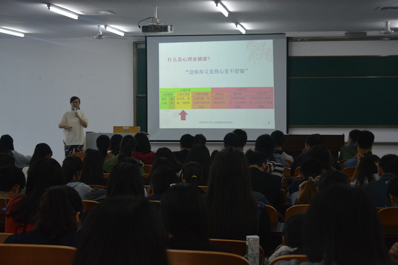 李老师注重强调了心理健康,提出了大学生心理健康包括正确的认知能力、和谐的人际关系、正确自我意识、健康的情绪体验且意志坚强可控、热爱生活并乐于学习生活、行为正常且人格完整和谐、正视现实并接受现实、生活情趣高尚等八条标准。同学们因此有了一个正确的参考方向。