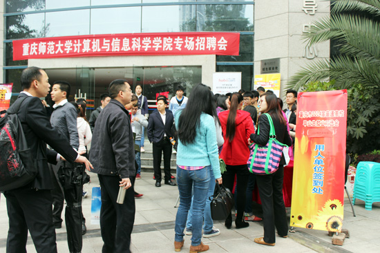 新老校友,如计算机科学与技术94级校友罗谦,10级应届毕业生陈丞。双选会现场参加应聘的学生们冷静地应对知识的较量与技术的挑战,表现出了较强的综合实力,得到用人单位的认可。