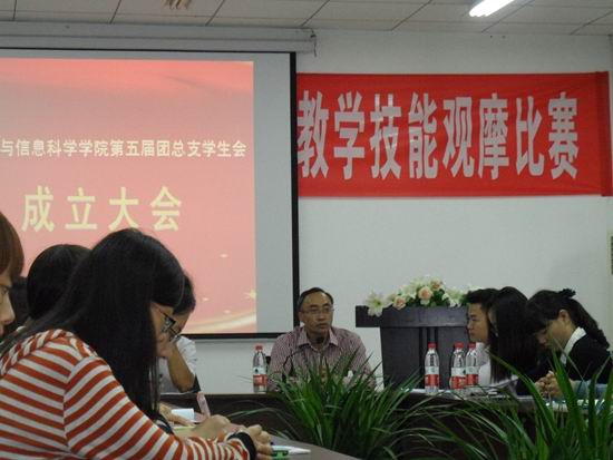 为传承计信学院团总支学生会的优良作风,增强学生干部的自信心和团队意识。学院第五届团总支学生会成立大会于2013年9月5日中午在集贤楼233会议室隆重召开。计信学院党总支书记刘军,党总支副书记杨宇,团总支副书记张敬,辅导员朱嘉洁、傅帆、辅导员助理(研究生)王节、相琳等领导和老师出席,全体第五届团总支学生会干部参与。大会由张敬老师主持。