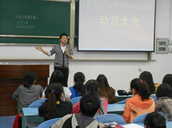 按照学校的相关要求在前期做了大量彩排及准备工作。2013年4月16日晚9:15,在弘德楼5203举行了第四十八届校春季田径运动会动员大会,参会人员有:团总支学工办负责人、各年级辅导员、全体学生干部、全体运动员及志愿者。