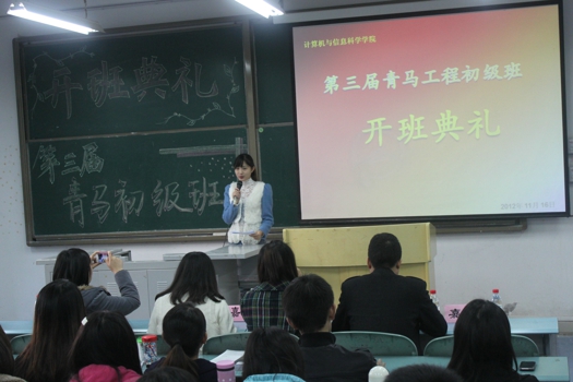 于2012年11月16日在弘德楼5101教室举行了第三期青年马克思主义者培养工程初级班开班仪式。院团总支副书记张敬、各年级辅导员和第四届团总支学生会全体学生干部、兄弟院系的代表出席仪式。