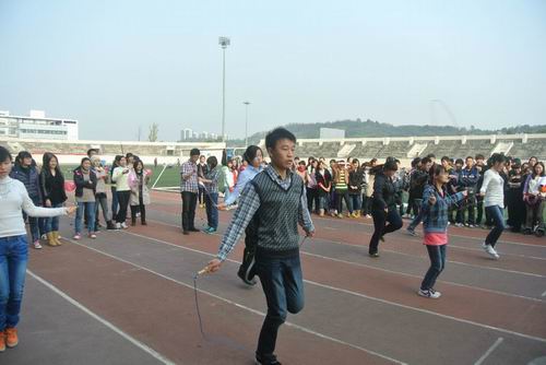 领导的大力支持与帮助,并在2011级辅导员孙柳艳老师的指导下学生们积极有序地进行体育锻炼、完成比赛项目。孙柳艳老师出席并观看了此次比赛。