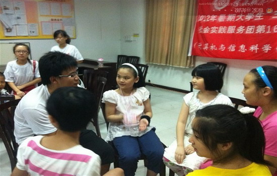 ,计信暑期大学生“三下乡”社会实践服务团第16分队的爱心家教组的10名志愿者前往重庆市渝中区临江门社区服务中心进行义务家教,与当地的16名小孩结对子。临江门社区被誉为“共青团市民学校示范点”并与浪live