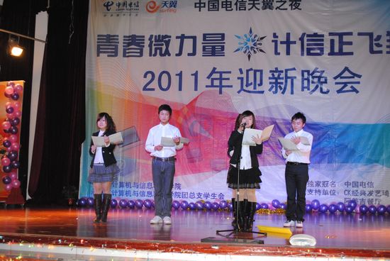 寒潮绕道去,热情洋溢来!伴着飘飞的彩带、亮丽的彩球,2011年12月11日晚上7:00,在同学们的欢呼与荧光棒的闪耀下,以“青春微力量,计信正飞翔”为主题的浪live