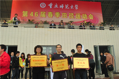 领导、师生的不懈努力下,以活跃的大本营氛围和大量的广播稿宣传等荣获“精神文明奖”第一名,以全体教职工和运动员的团结拼搏喜获“教职工团体第一名”和“男生团体第三名”!