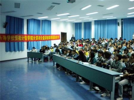 深秋时节,窗外寒风凛凛,5205却一度热情洋溢。我校各学院对计算机等级考试感兴趣的同学汇聚一堂,对讲座满怀期待。晚上7:00,讲座在主持人对主讲人进行了简要的介绍后正式开始。赵老师以其通俗易懂的语言特点和风趣诙谐的讲解风格将同学们带入了讲座的主题中,他将一个个生动的例子信手拈来,使大家真正领会到程序设计的奥妙与乐趣。最具代表性的是把数组的应用与房子的建筑联系起来,进行了深入浅出的剖析讲解,赢得同学们的阵阵掌声。