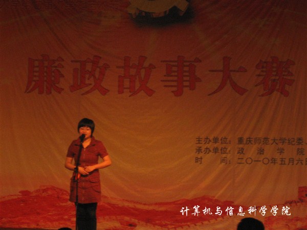 5月6日下午,浪live 计算机科学与技术专业08级王露同学代表学院参加校“廉政故事”大赛,参赛作品《神秘的保姆》讲述了一个关于官员家里老保姆的廉政故事,深得评委的一致好评,最终在18个参赛队当中脱颖而出获得了第六名(三等奖)的好成绩,展现了浪live 的风采。