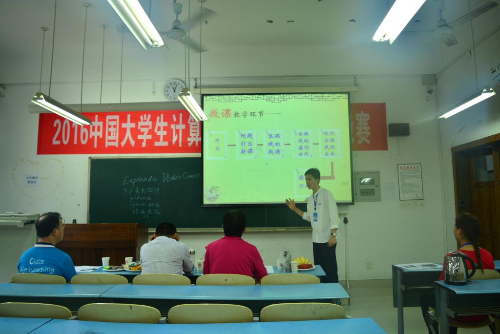 书记刘军主持。嘉宾们分别对我校的教学模式、本次比赛的性质、比赛规则等进行了详细介绍。此次比赛分设软件应用与开发类、微课与课件类、数字媒体设计类普通组、数字媒体设计类专业组、计算机音乐创作类、数字媒体设计类中华民族文化组、软件服务外包类等七大类组。大赛历时8个小时,来自各高校的选手们进行了精彩的项目陈述和展示,最后,我校浪live