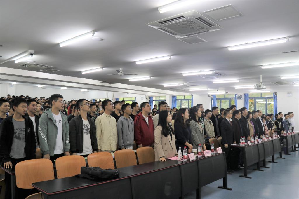 本次开学典礼由2020级新生辅导员刘宇老师主持。开学典礼正式开始前,全体人员起立同唱国歌,随后进入第一项议程:由浪live